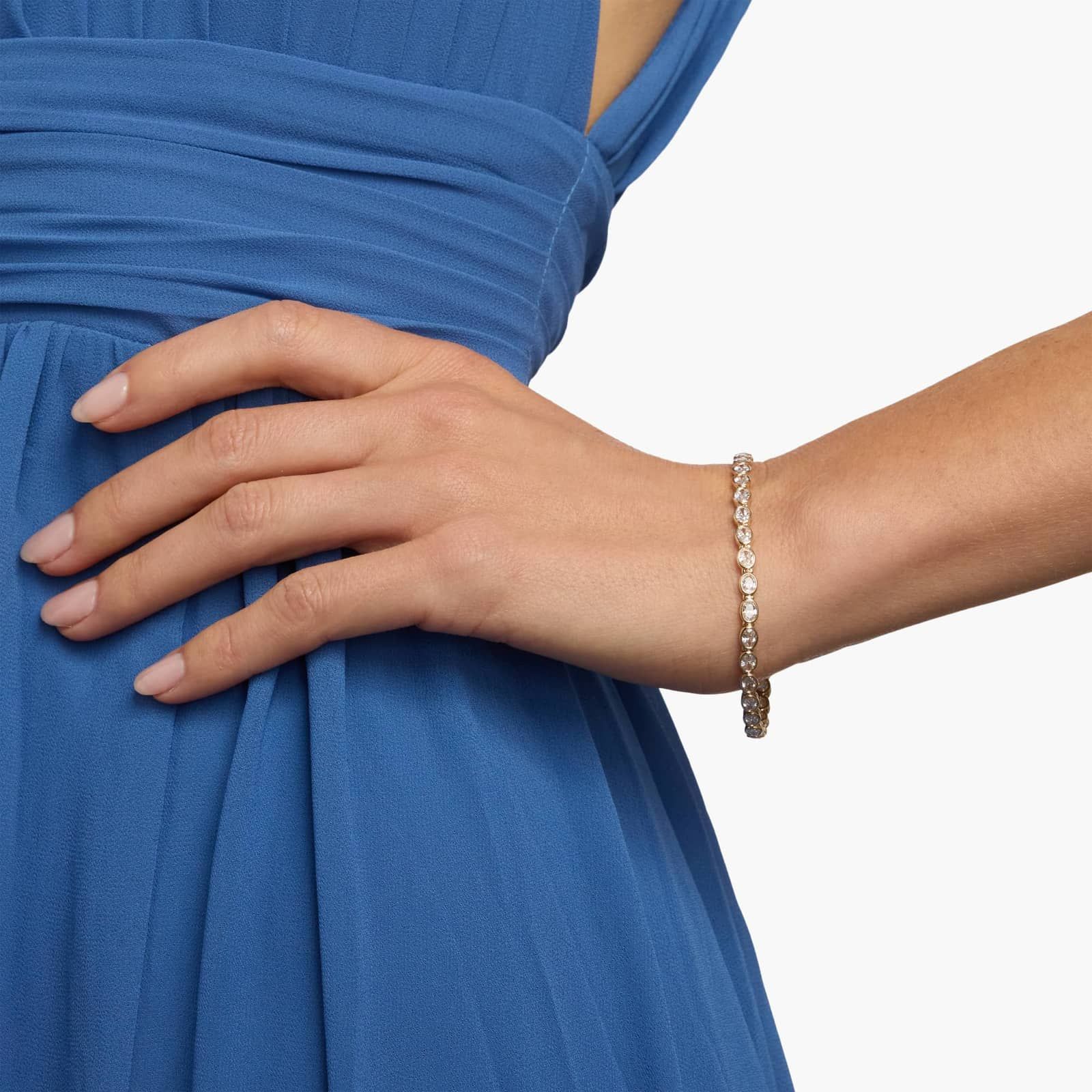 Crafted in 14K solid gold, this tennis bracelet features 5 cttw of oval-cut diamonds set in a secure bezel design. The smooth setting enhances each diamond’s brilliance while ensuring durability and comfortable wear. Elegant and versatile, it’s perfect for everyday styling or special occasions, combining timeless sophistication with refined craftsmanship and modern luxury.