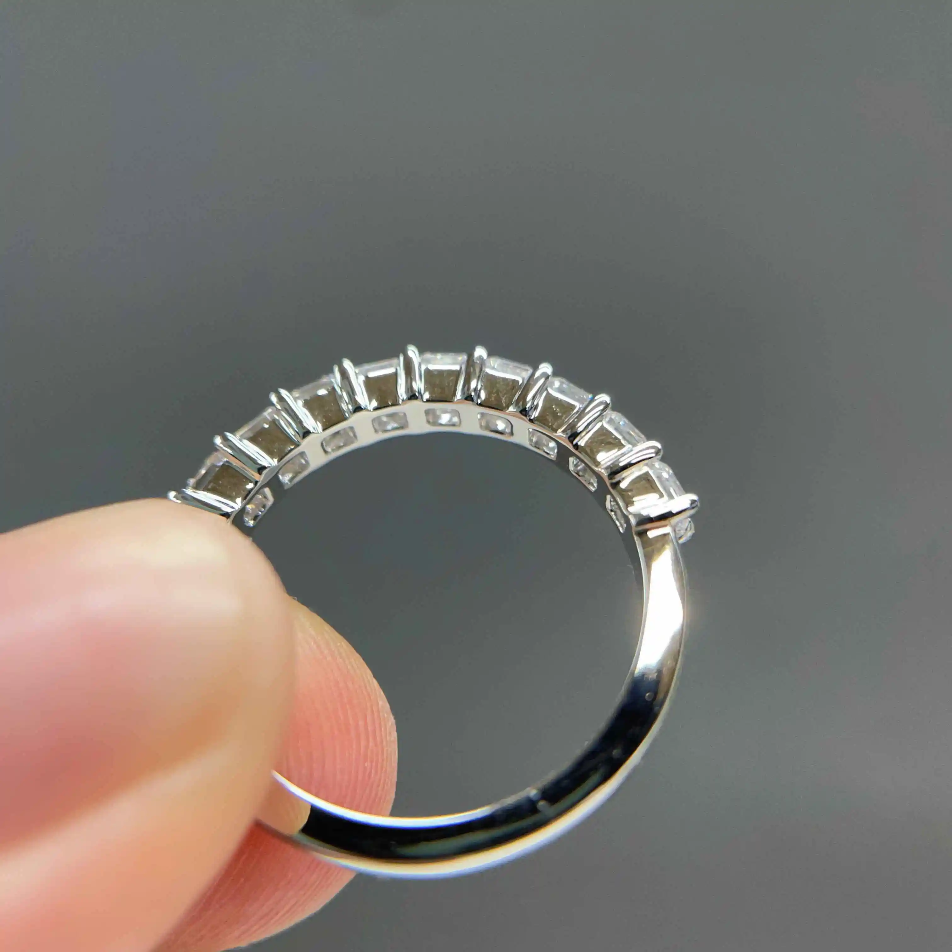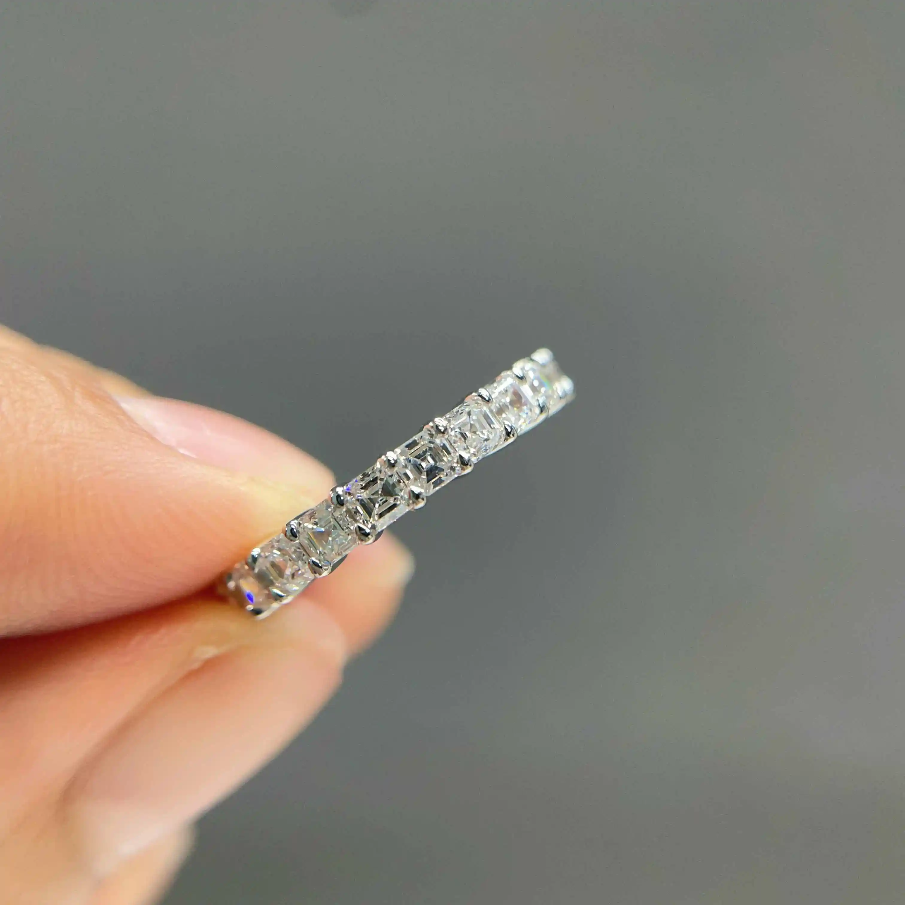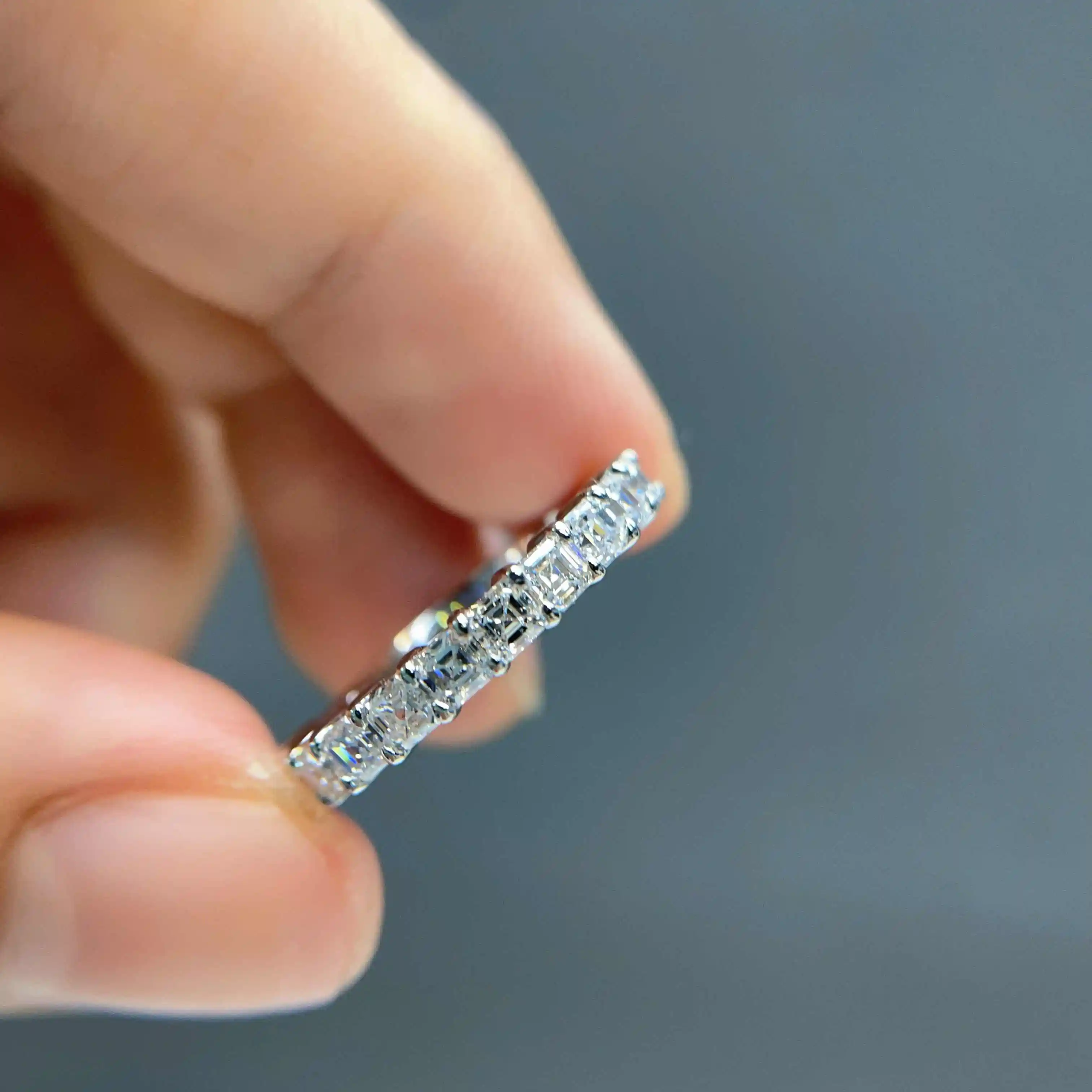 Each piece is meticulously crafted with attention to detail and quality, ensuring your custom jewelry are as unique and stunning as you envisioned. Enjoy the freedom of creating timeless accessories that reflect your personal style, especially with the flexibility offered by this luxury asscher diamond wedding band 1ct half pave design.