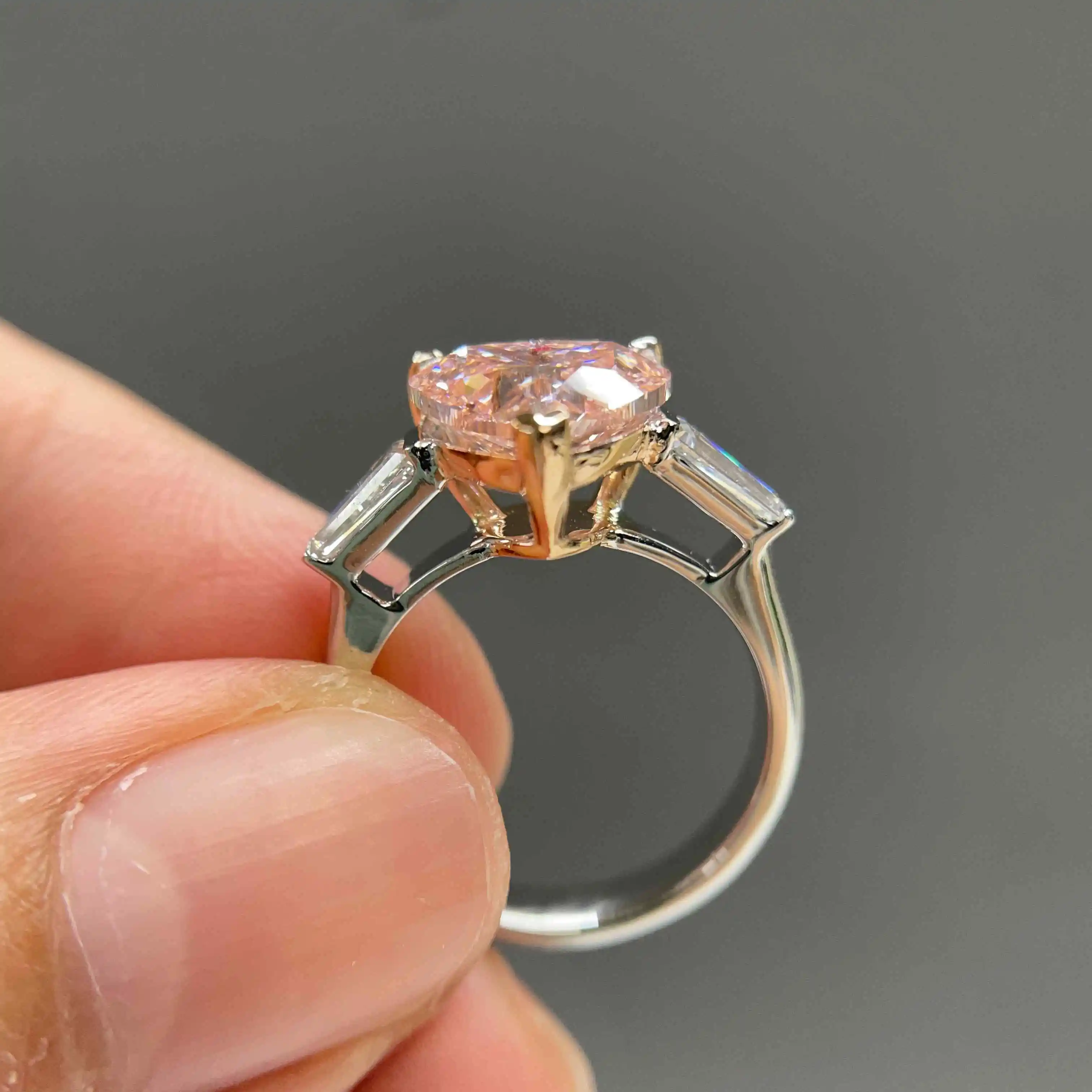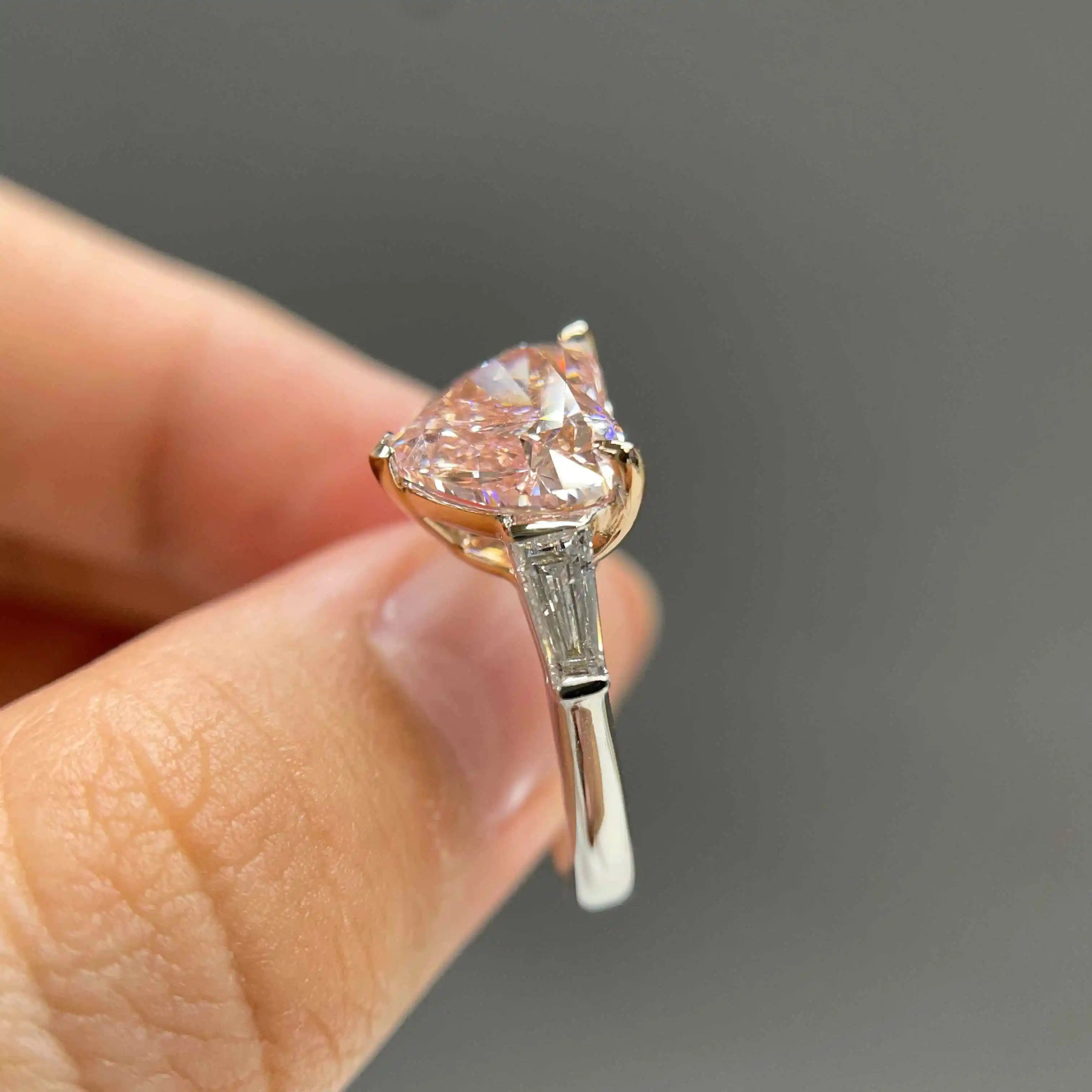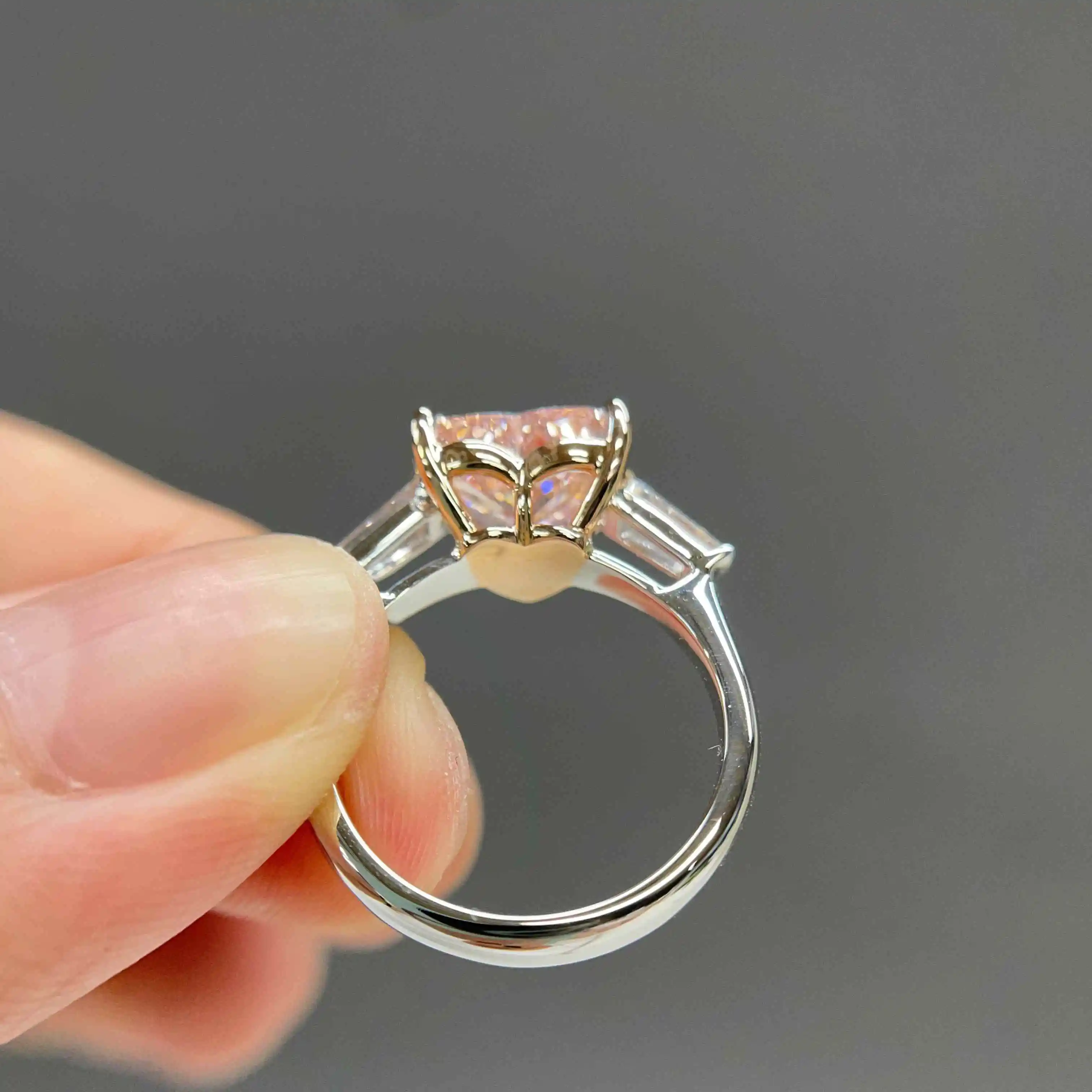 About this celoray 18k white gold 3ct vivid pink heart diamond engagement ring in 3-stone design accents with luxurious craftsmanship: