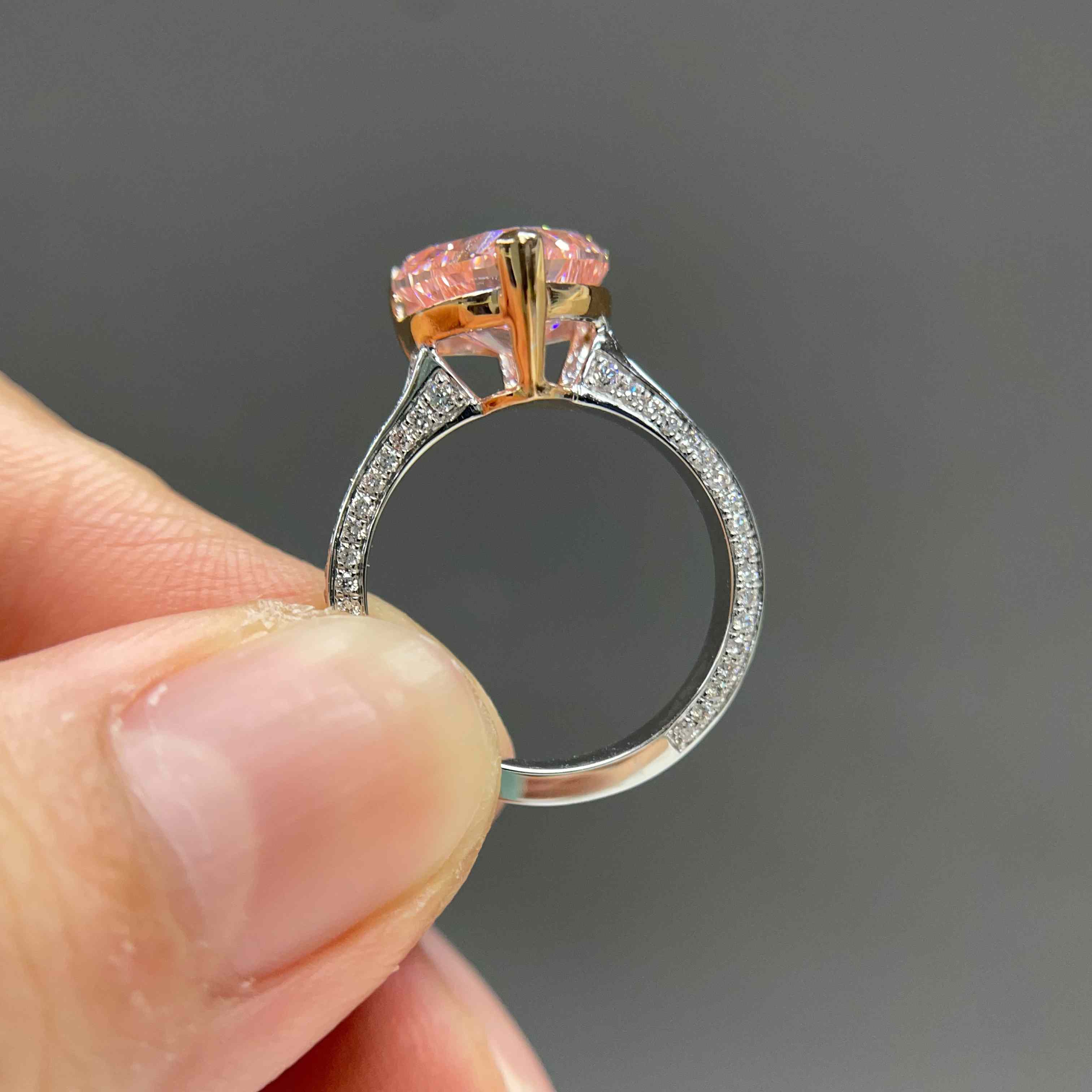 About 18K White Gold Custom 3ct Pink Heart Lab diamond Engagement Ring with luxurious craftsmanship: