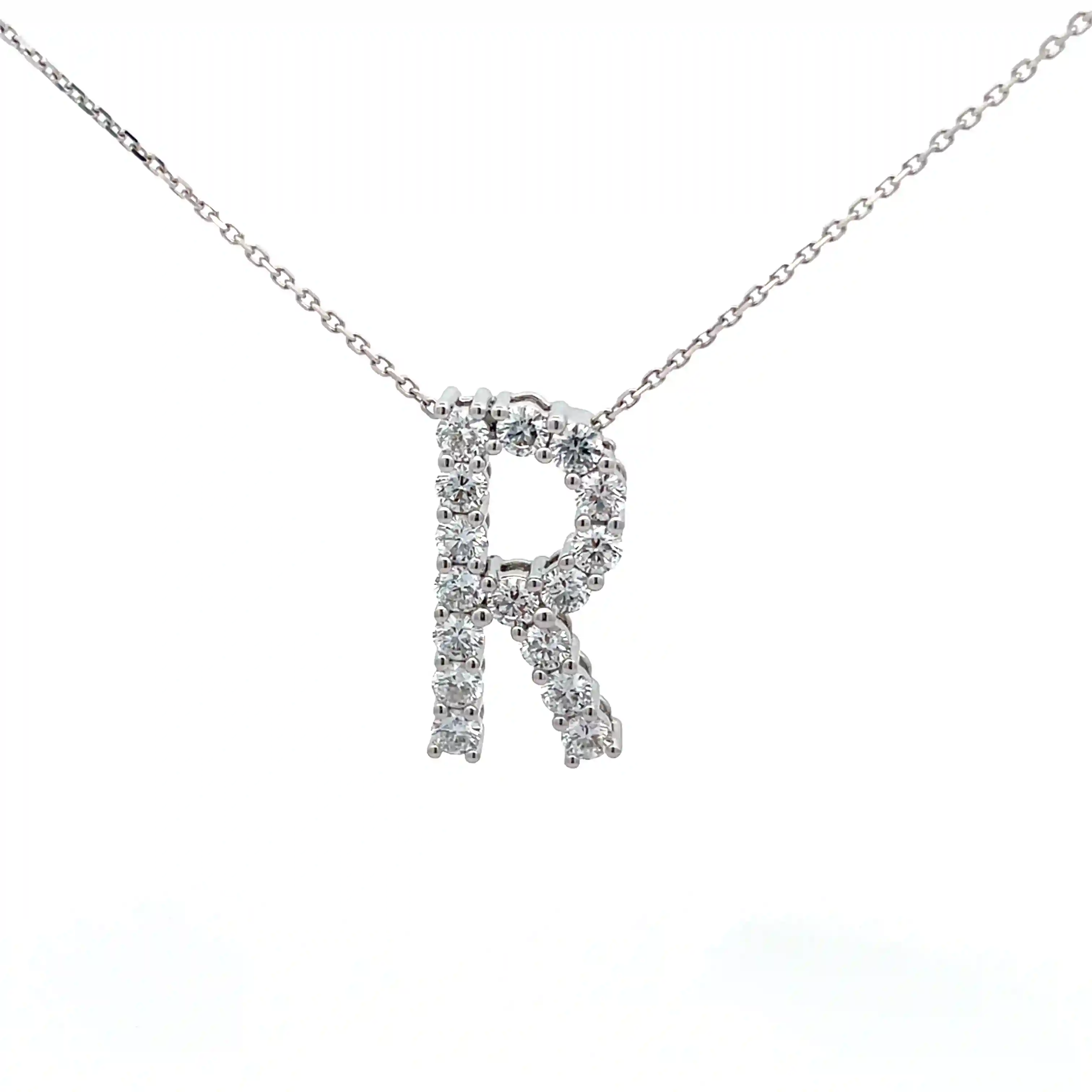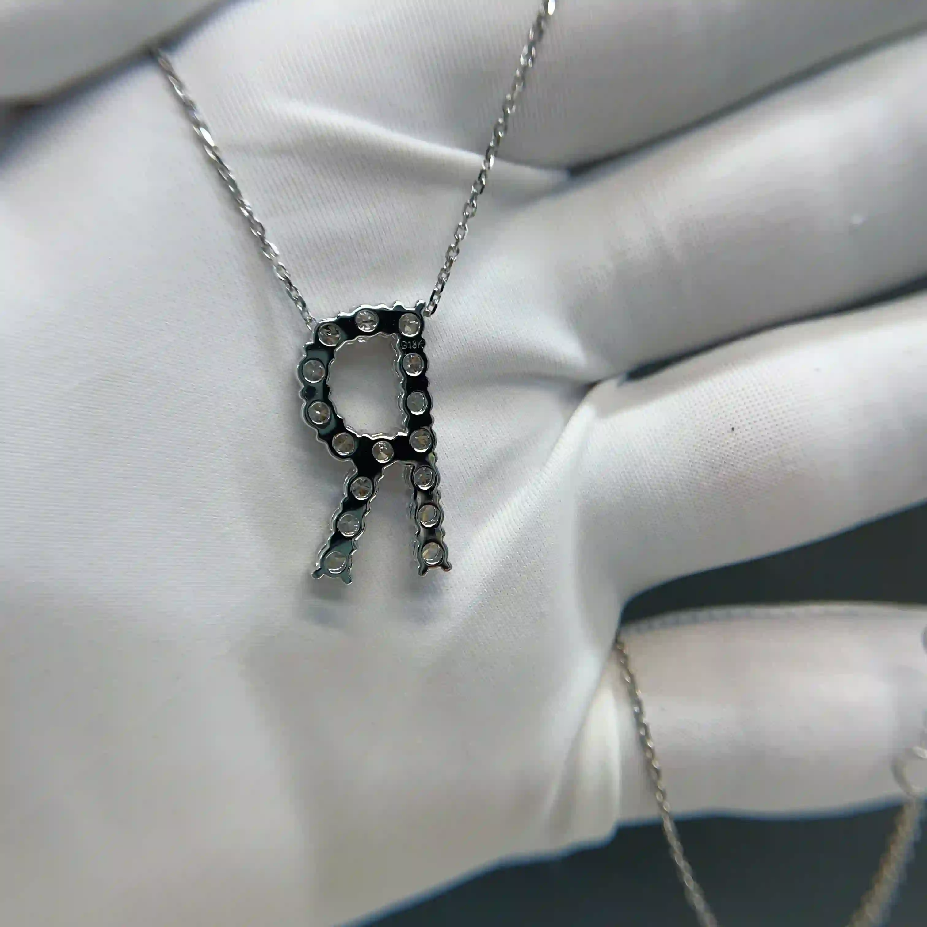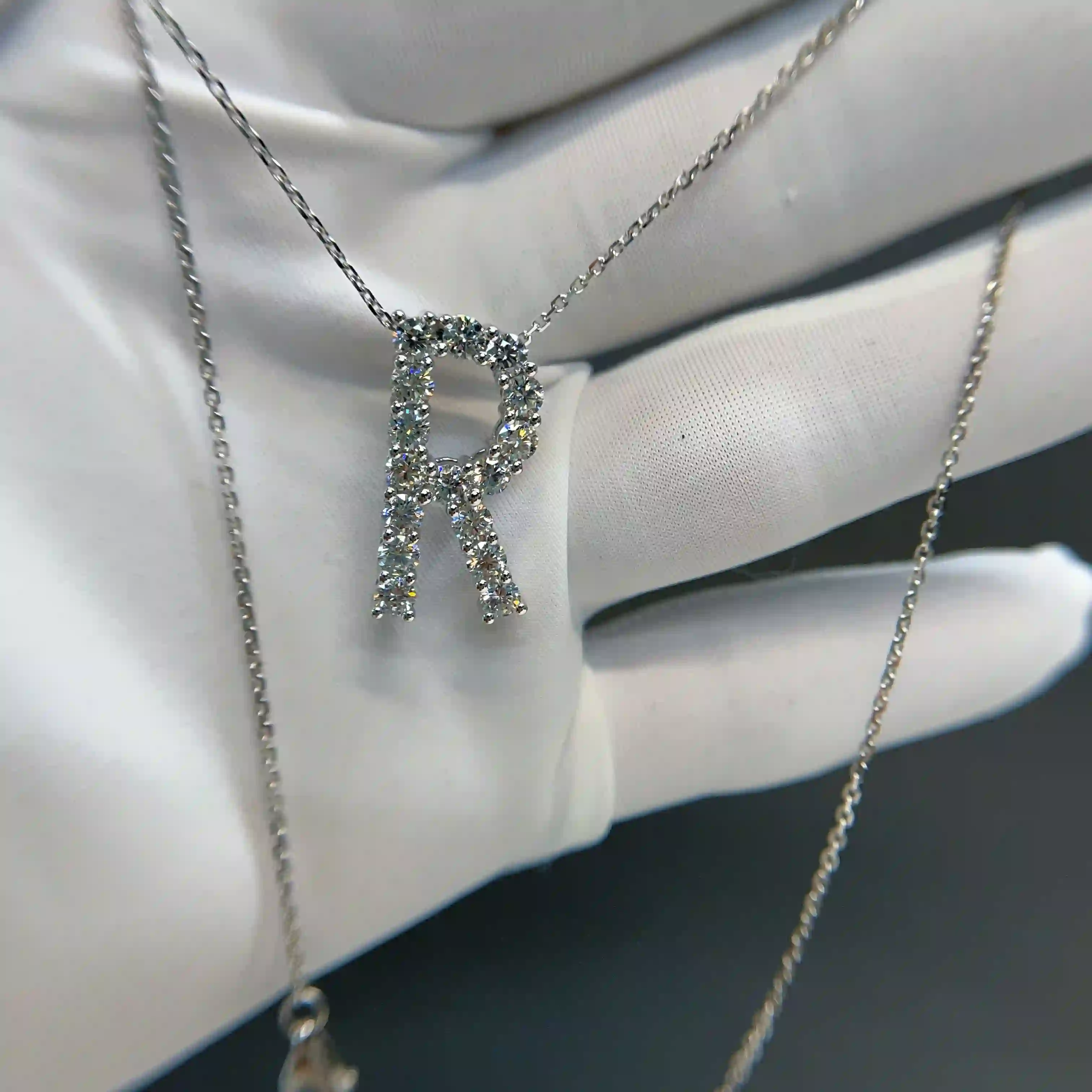 About this large initial R pendant with pavé diamonds in white gold with luxurious craftsmanship: