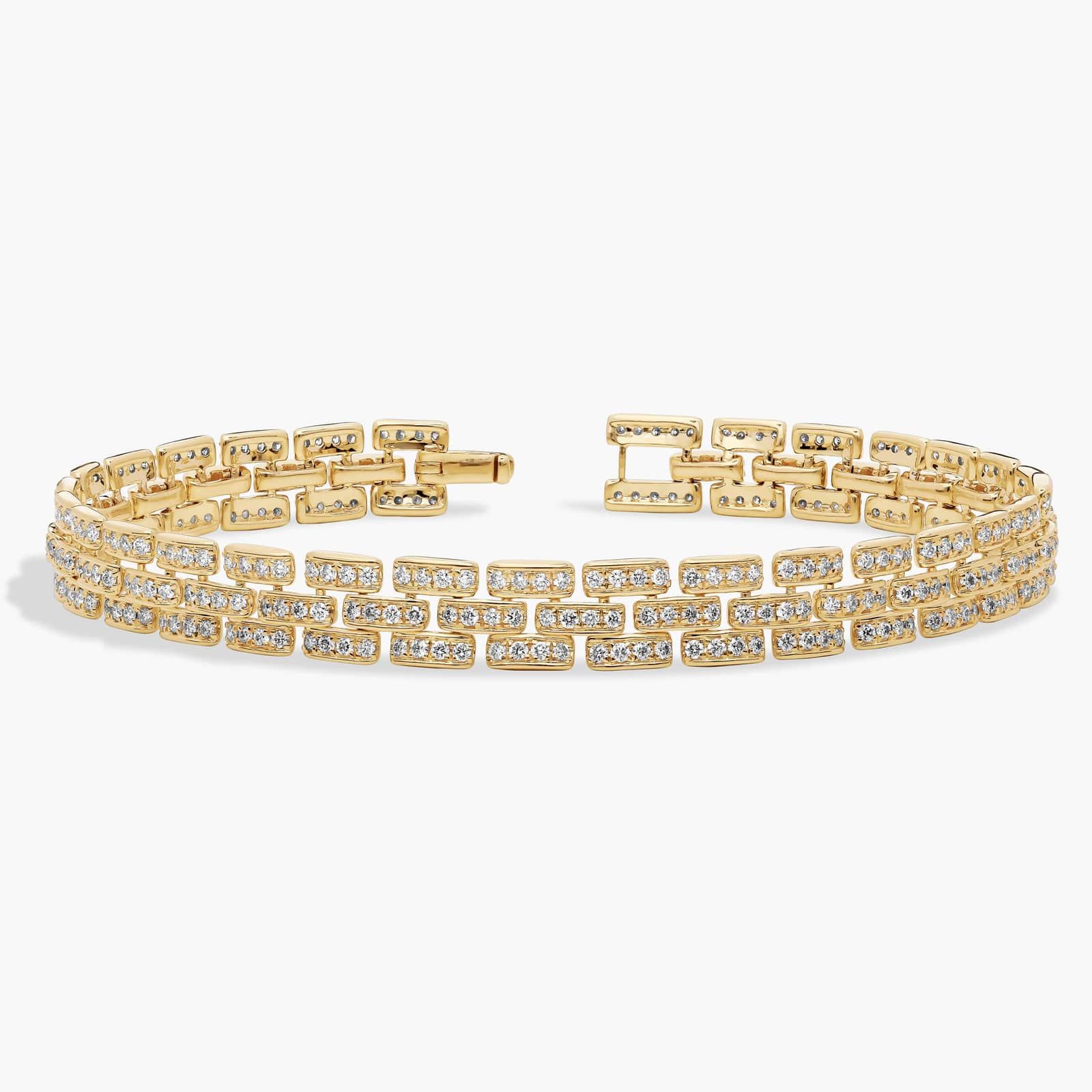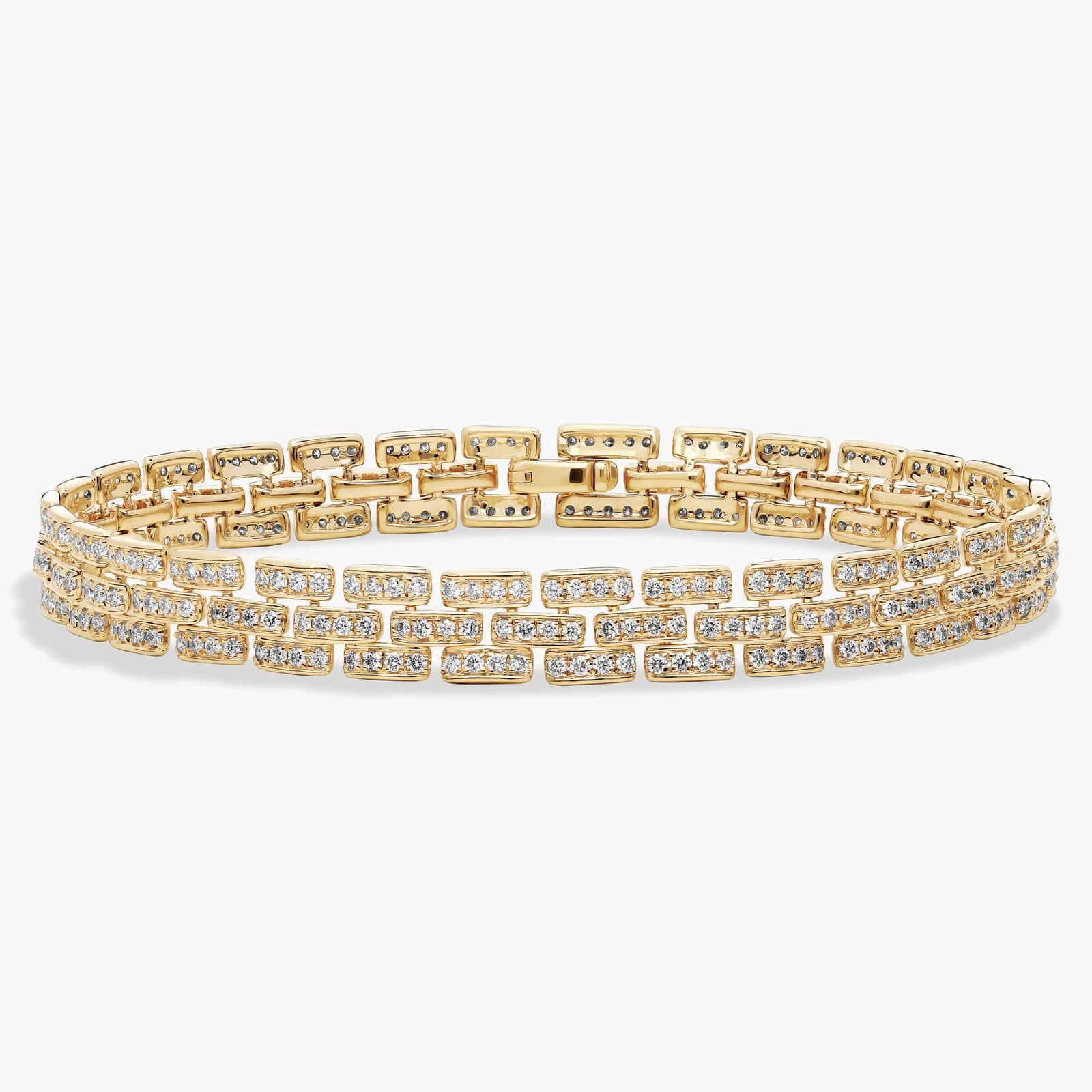 Crafted in 14K yellow gold, this Celoray customized Panthère link bracelet features 2 ctw of sparkling diamonds for refined brilliance. The iconic articulated link design offers fluid movement and a luxurious feel on the wrist. Elegant yet distinctive, it’s designed for comfortable everyday wear or special occasions, blending timeless style with modern craftsmanship and sophisticated luxury.